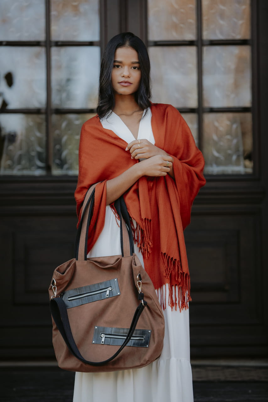 Do noszenia na ramieniu lub na skos na długim regulowanym, odpinanym pasku.